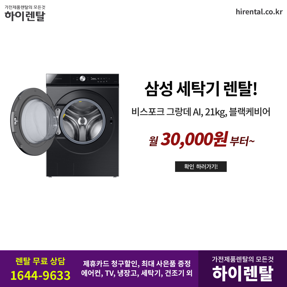 #삼성세탁기렌탈 #통돌이세탁기 #드럼형 #세탁건조기 #세트구성 #건조기 #의류관리기 #세탁가전 #빨래살균 #옷냄새제거 #유해균제거 #할인요금 #사은프로모션
