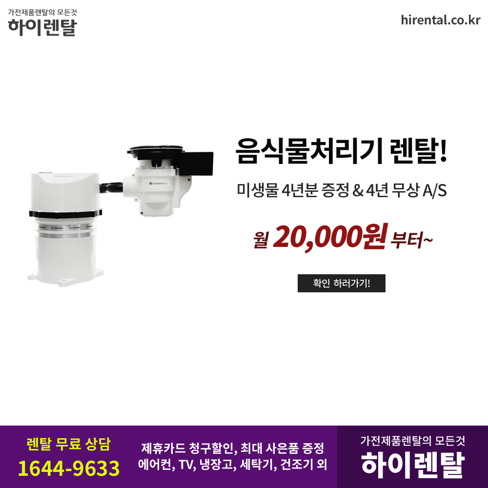 #스마트카라 #음식물처리기 #수준제로기술 #건조분쇄 #부피감소 #고온히팅 #병원성미생물 #유해세균제거 #저소음작동 #원터치작동 #위생세척가능 #제휴할인 #렌탈료면제 #추가혜택