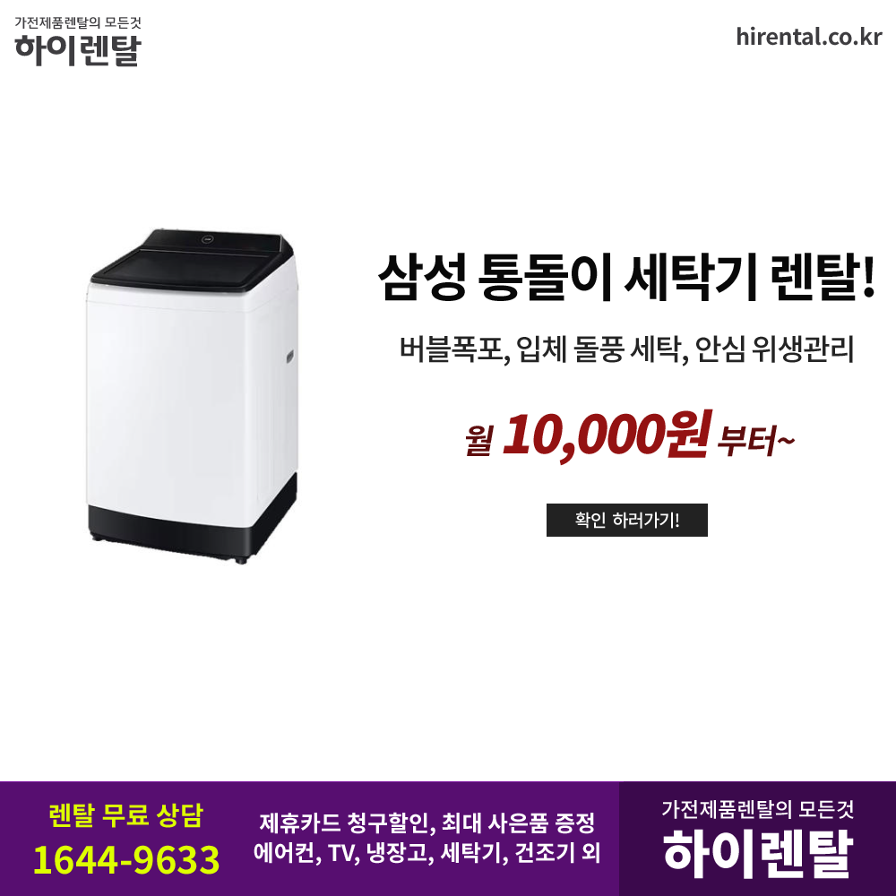 #그랑데AI세탁기 #세탁기렌탈 #에코버블 #강력한워터샷 #찌든때제거 #세제찌꺼기 #AI맞춤 #에너지절약 #유해세균 #집먼지진드기 #안심살균 #반려동물코스 #위생강화 #알찬행사