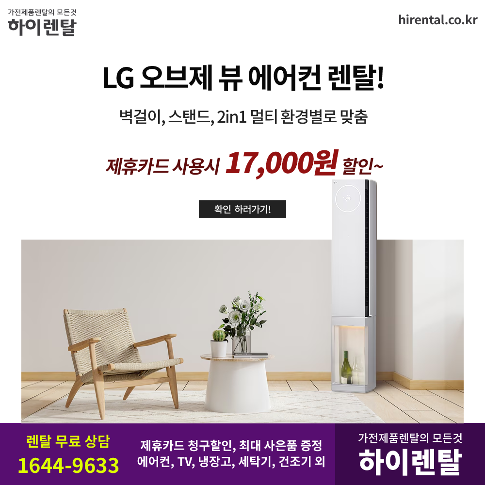 #LG스탠드에어컨 #벽걸이에어컨 #2in1멀티 #오브제컬렉션 #AI바람컨트롤 #휘센청정관리 #슬림핏디자인 #뷰케이스쇼룸 #열교환기세척 #AI건조 #UVLED팬살균 #바람방향조절 #하이렌탈 #할인행사