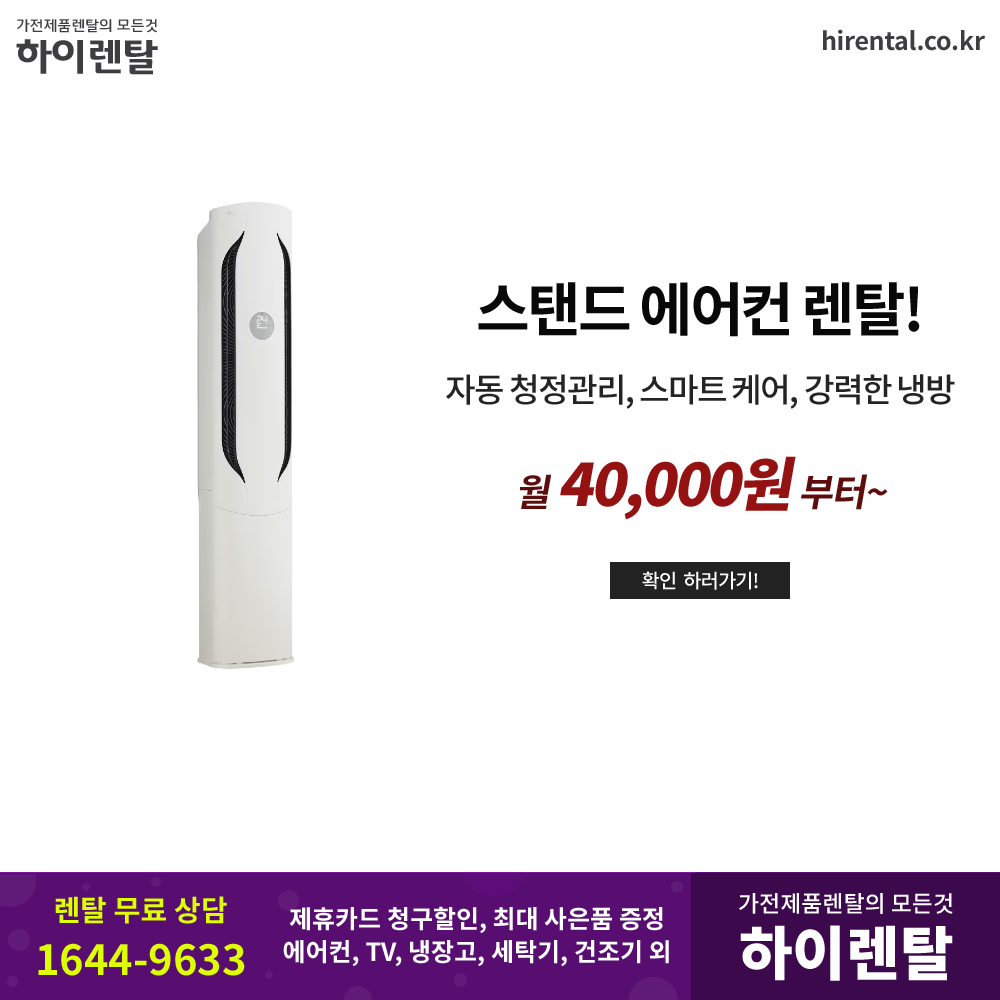 현재 하이렌탈에는 LG 스탠드 에어컨 렌탈을 시작으로