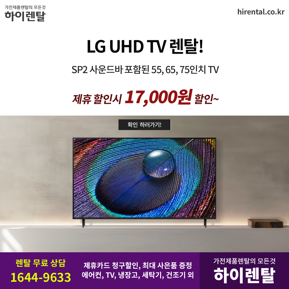 #LGUHDTV #LG사운드바 #SP2증정 #리얼4K화질 #최적의영상 #입체사운드 #벽걸이티비 #스탠드TV #스마트기능 #OTT연결 #빠른설치 #제휴카드할인 #현금지원 #하이렌탈