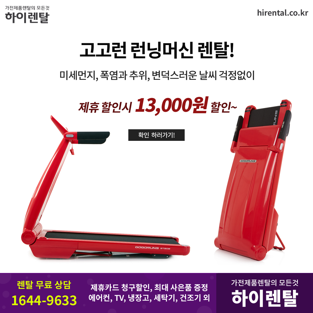 #고고런런닝머신렌탈 #ST808 #GT90 #고고런5 #사이클 #로잉머신 #다이어트 #운동시작 #체력키우기 #살빼기 #트레이닝 #건강관리 #제휴카드할인 #현금지원