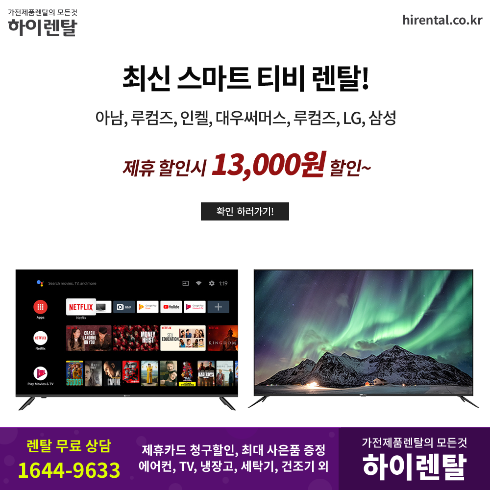스탠드 티비, 카드 할인으로 저렴하게 렌탈