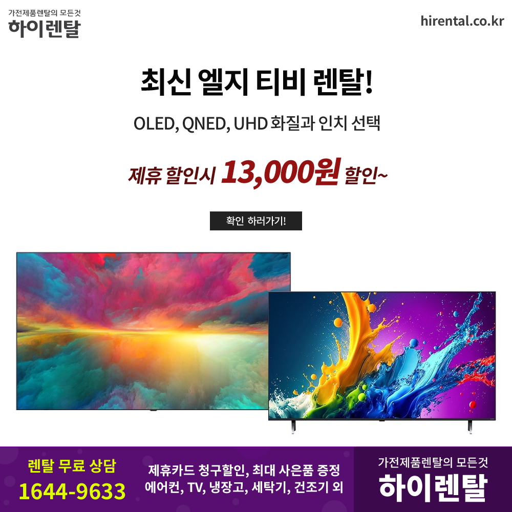 #스탠드티비 #벽걸이TV #스탠바이미 #삼탠바이미 #QLED #QNED #OLED #UHD #화질인치선택 #삼성티비 #LGTV #카드할인 #현금지원 #하이렌탈