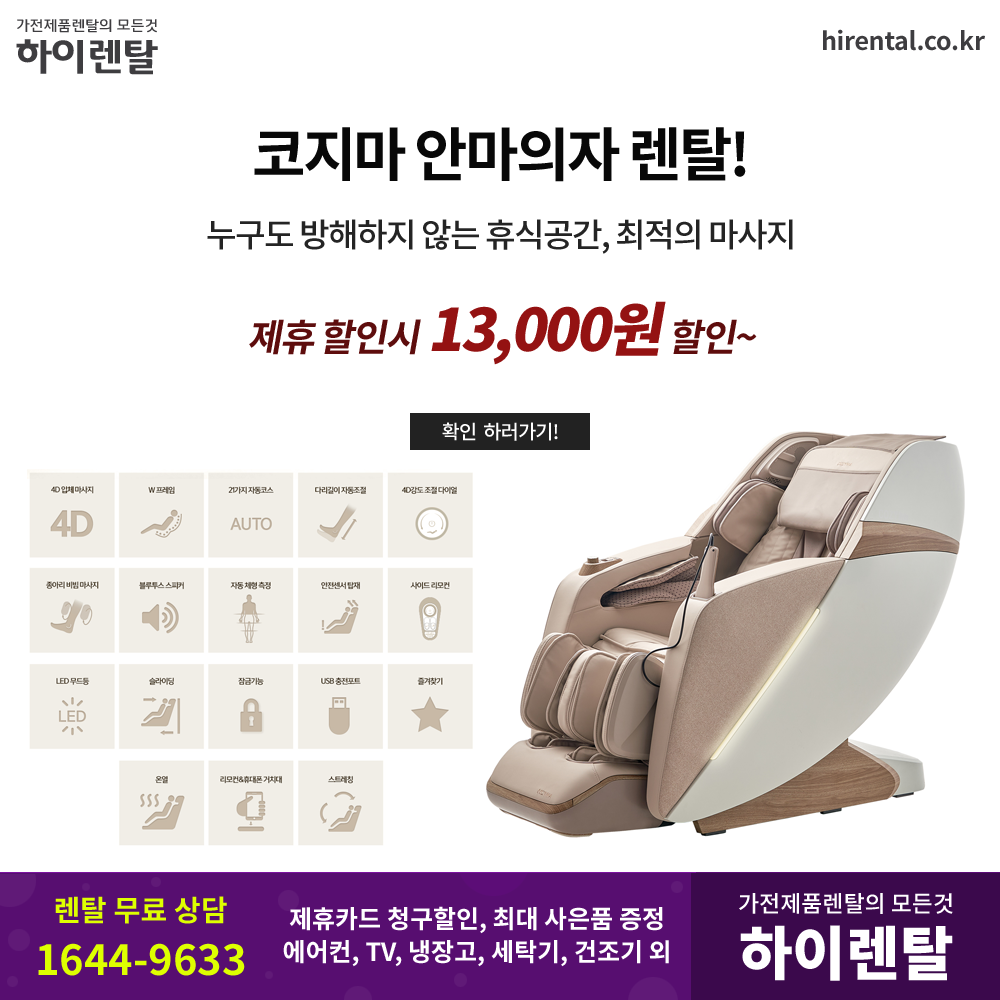 #안마의자렌탈 #가격비교 #코지마 #브람스 #파나소닉 #오코 #웰모아 #누하스 #전문기사님설치 #피로회복 #마사지 #요금면제 #최대할인 #현금지원