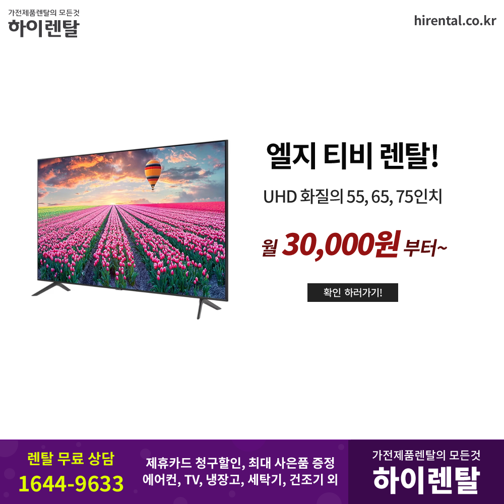 #엘지티비 #UHDTV #벽걸이티비 #스탠드TV #스탠바이미 #룸앤티비 #LG가전 #가전제품렌탈 #제휴할인 #요금절약 #사은품 #렌탈료면제 #하이렌탈