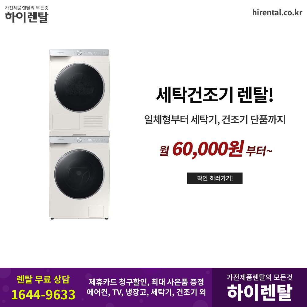 #세탁건조기렌탈 #세탁기 #건조기 #삼성원바디 #비스포크 #LG워시타워 #빨래냄새 #먼지제거 #빨래시간단축 #여유시간 #최대혜택 #제휴할인