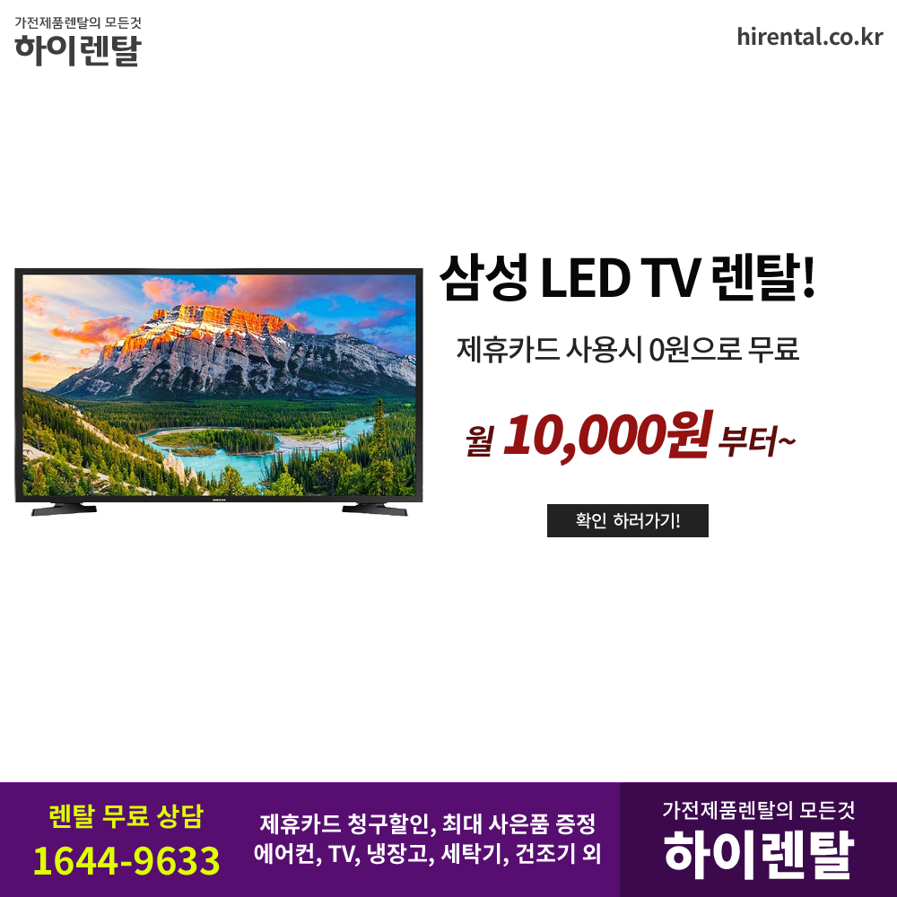 #티비가격비교 #하이렌탈 #스마트TV #최신티비렌탈 #벽걸이스탠드설치 #화질크기선택 #가성비 #TV교체 #삼성전자 #엘지전자 #아남 #더함 #대표브랜드